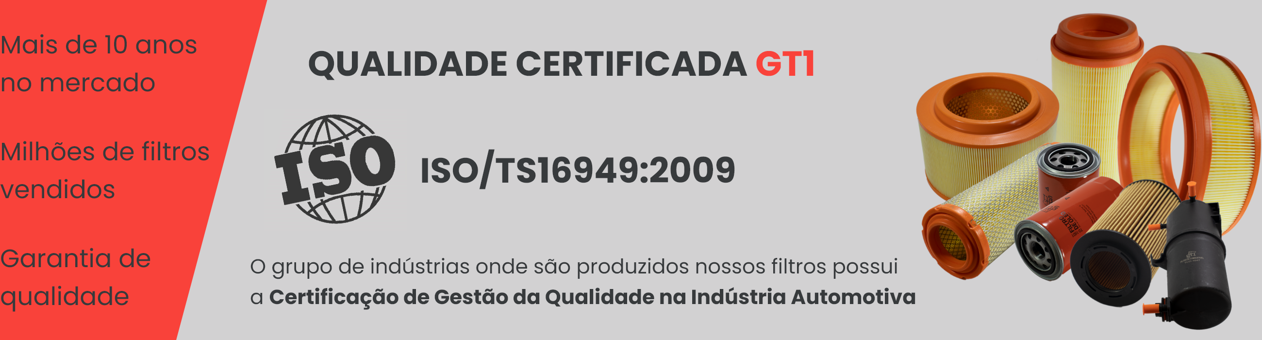 A exigência de um elevado padrão para a produção dos filtros automotivos GT1 é resultado da preocupação com nossos clientes, trabalhamos muito para que eles possam desfrutar de nossos produtos com segurança. A nossa meta é oferecer a melhor experiência aos nossos consumidores através de produtos diferenciados.